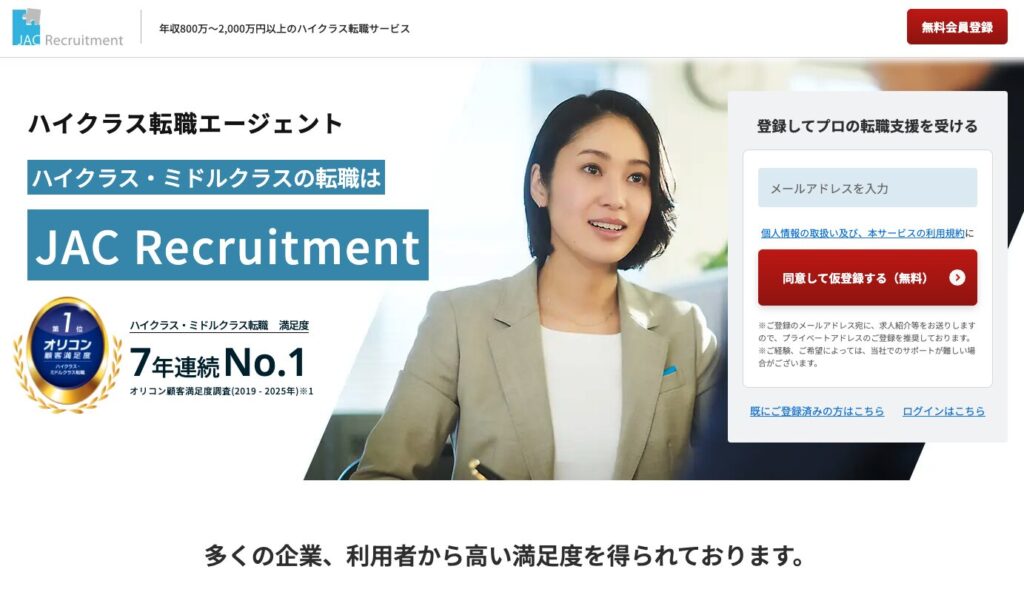 JACリクルートメントは、30代以降の向けのハイキャリア転職エージェントです。